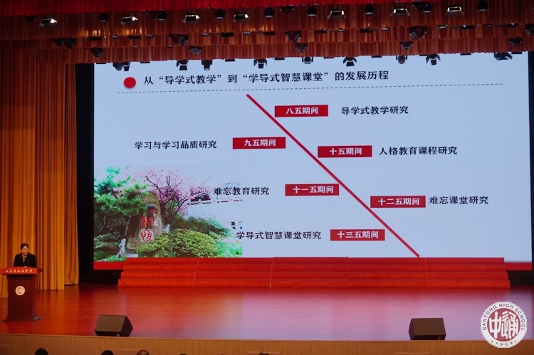 上午8:30,在学校崇雅楼,成锦平校长代表学校致欢迎辞;陈建云副校长为全体来宾作题为《基于核心素养的课堂教学改革探索与实践——从“导学式” 到“学导式” 的课堂教学改革》的学校课堂教学改革主旨报告。