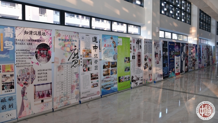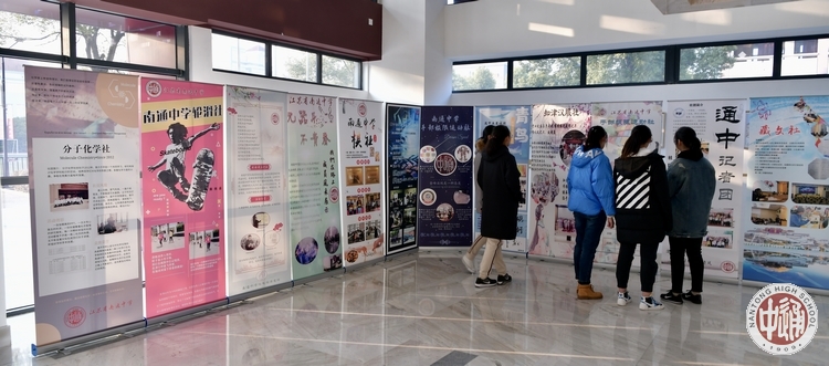 为彰显学校办学特色,进一步展示我校课程建设成果和通中校园社团活动的丰富精彩,当天中午,在崇雅楼礼堂、校园主干道和操场进行了学校社团集中展示。来宾们通过观看校诚恒TV制作的宣传短片,领略通中校园各大社团的风采;通过欣赏校管乐交响乐团的管乐合奏《我的祖国》、校周一讲团和朗诵配音协会同学表演的配乐朗诵《青春中国》、校合唱团的合唱《美丽的草原我的家》《我爱你中国》等精彩展演,感受通中学子的饱满热情,体验百年通中的深厚底蕴。