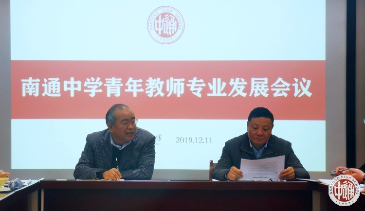 最后成锦平校长讲话,对青年教师专业发展以及相关工作提要求。成校长借用自己成长的经历与大家一起分享了他对青年教师专业成长的认识。他说青年教师要有内在积极主动发展的意识;围绕课堂在于育人质量上狠下功夫;要充分利用好南通中学这个平台,主动向身边的老师学习,促进自身又好又快地成长,让自己的青春没有遗憾。
