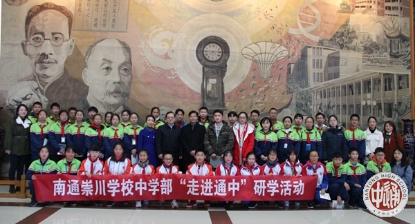 12月25日,南通市崇川学校首届初三年级优秀学生及初一初二学生代表,在校长和班主任老师的带领下,在我校开展参观研学活动。在我校李馣老师的引领陪同下,同学们参观了校园、校史馆、中学堂和国学馆。红楼楸树、古书典籍,人才辈出、大家云集,眼前的一幕幕给学生们留下深刻印象,与通中优秀学长高一创新班张玉颜、吴桐两位同学的交流也让大家受益匪浅,在参观过程中同学们深受激励,暗暗立志,要立足当下、努力学习,将来成为骄傲的通中人!