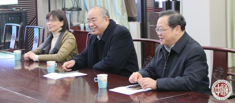 成锦平校长从“历史悠久、难忘教育、人才辈出”三个方面介绍了学校的办学理念、办学特色以及取得的办学业绩。并针对考察团成员提出的“学导式智慧课堂的架构理念”、“高品质高中的规划建设”、“学校特色课程的开发设计”等问题做了详尽的阐释。