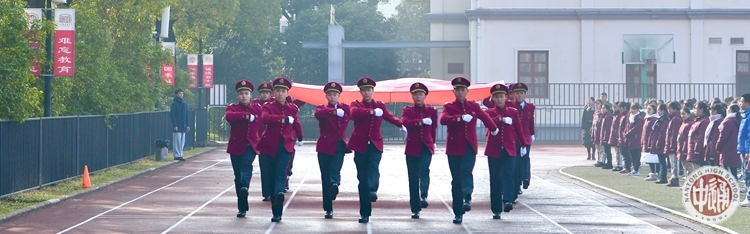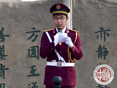 在过去的一年时间里,老国旗班队员们刻苦训练,履行职责,护卫着鲜艳的国旗与校旗。交接仪式上,高二(9)班陶一鸣同学代表全体老国旗班队员发言,表达了铭记经历,珍藏荣誉,退役不褪色,继续发扬国旗班精神的坚定决心。高一(18)班顾毅罡同学代表新国旗班全体队员庄严承诺:发扬团结协作的精神,严以律己,刻苦训练,遵守纪律,履行职责,以最好的素质,最佳的状态高质量地完成各项任务,时刻捍卫国旗与校旗的尊严,无愧于国旗班的光荣称号。最后,新老国旗班班长高二(5)班陆曦晨、高一(3)班周子宸同学共同完成了象征责任和坚持的国旗传递环节。