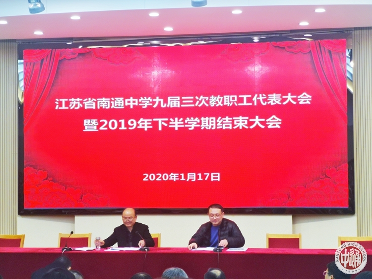 陈书记在报告中指出,2019年,在学校百十年发展进程中注定又是一个备受瞩目、硕果累累的一年。学校隆重举办了庆祝建校110周年五大系列活动,社会各界好评如潮;民族教育再获殊荣,被国务院授予“全国民族团结进步模范集体”的光荣称号;学校被江苏省教育厅确立为首批20所高品质示范普通高中立项建设学校;被评为“第二批省级教师发展示范基地校”;成功申报为“江苏省高中学科发展示范中心——化学学科发展创新中心”;成功申报了江苏省基础教育前瞻性教学改革实验项目——“基于英才教育目标的‘四位一体’育人模式建构”。学校《全力打造“四结合”国防教育全域化》案例,获评教育部首届全国学校国防教育30个典型案例之一;在教育部、中宣部组织的第三届全国中小学电影周中,《楸约》荣获优秀微电影作品。在全国第十一届少数民族运动会上,学校荣获全国竞技体育比赛二等奖;在江苏省第26届“通中杯”中学生排球锦标赛中,学校女排荣获冠军。学校先后接待了美国、匈牙利、香港、台湾、上海、福州、四川、陕西等国内外团队近百批次来访,与匈牙利“匈中双语学校”和美国“希布尔中学”结成友好学校,获评了“2019年江苏省基础教育对外合作交流重点项目学校”。