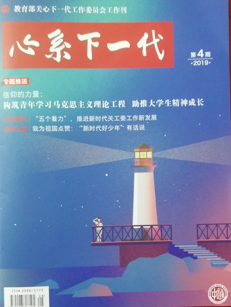 近日我校关工委收到教育部关工委工作刊《心系下一代》(双月刊)2019年第4期。该期“经验集萃”栏目刊发了我校关工委《“诚恒”铭千秋,牵手共传承》一文,记叙了我校关工委组织校友“诚恒”辅导员志愿者系列活动。作为通中关工委工作品牌项目,该活动起始于2009年百年校庆,持续了十多年,成为我校德育活动的重要亮点之一。