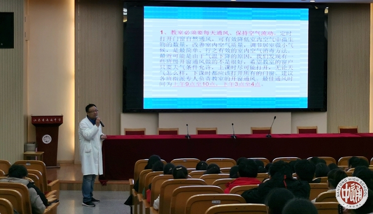 1月23日上午,我校在科学楼三楼报告厅召开面向在校西藏生的预防冬季呼吸道传染病专题讲座,讲座由校医务室黄勇老师担任主讲人。黄勇老师从冬季呼吸道传染病的种类、基本症状、防护措施等方面作了具体的介绍,同时根据江苏省卫健委关于新型冠状病毒感染的肺炎疫情提出的个人防控措施,针对我校西藏生在生活、饮食、卫生习惯等方面的特点,明确了学生疾病预防的基本要求。