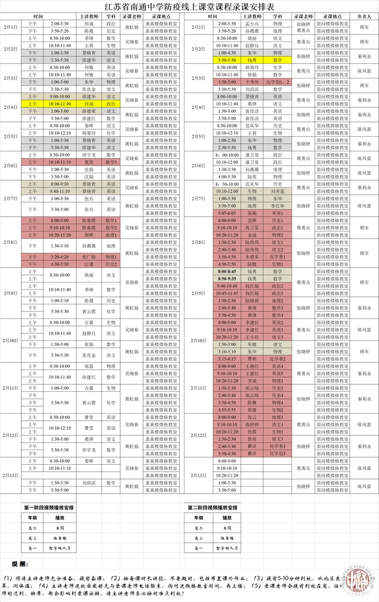 各年级部紧急安排各备课组骨干教师参与录课,录课教师积极响应,排除紧张心理,克服种种困难,在家精心备课,在规定的时间准时到学校录制课程,确保“线上课程”高质量、准时播出。