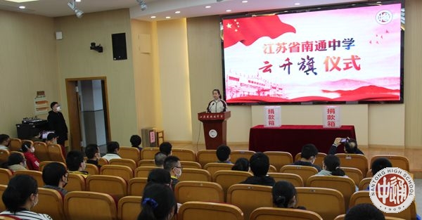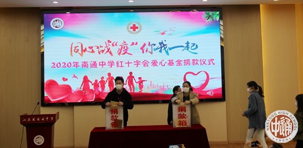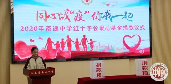 在庄严的奏唱国歌、校歌环节后,举行了2020年红十字爱心基金捐款活动。每年三月初“学雷锋”活动开展时,南通中学爱心基金会都会组织全校师生进行爱心捐款。今年,由于疫情的影响,捐款活动在时隔一个月后举行,活动延时,但爱心不减!多年来,学校致力于将全体师生的一笔笔爱心捐款用于帮助身边陷入困境的同学,让他们在成长道路少一分坎坷,多一些欢笑,使他们感受到通中大家庭的温暖,于逆境中增添直面艰险的勇气和战胜困难的信心。