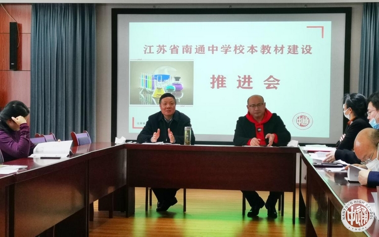 4月15日下午,南通中学校本教材建设推进会在科学楼三楼名师工作室召开,刘忠保副校长、校本教材编写组成员共同参加,教科处副主任潘雪峰主持会议。