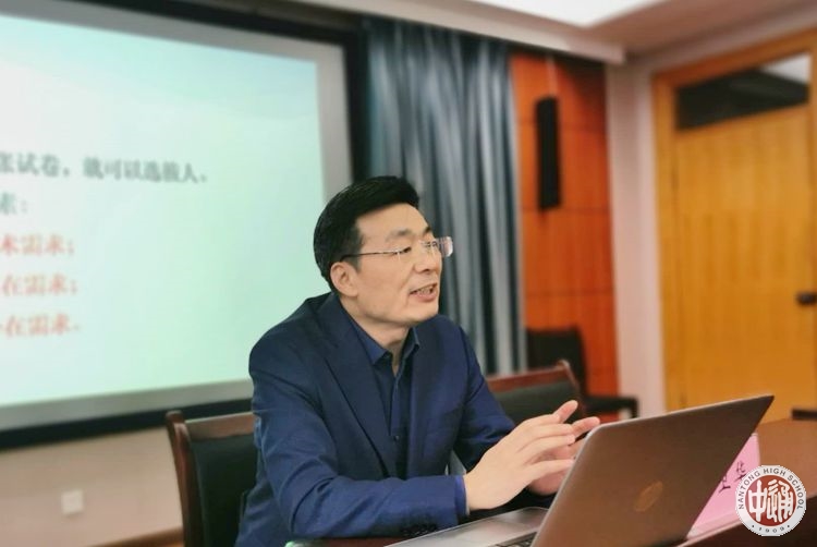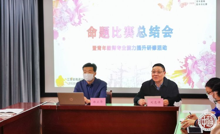 本次总结会还专门邀请了南通市教育科学研究院徐卫华副院长进行主题讲座。徐院长是特级教师、正高级教师,知名的命题专家。他曾多次参与高考命题,负责南通市相关的命题工作,在命题方面有着很深入的研究。他从命题本身的技术需求、学科价值的内在需求、人才发展的外在需求三个方面对命题过程的规范性程序,如何命制高质量试题的关键策略做出了切实有效的指导,整个报告高屋建瓴、内涵丰富、论述精辟、求真务实。在最后,徐院长也对通中的青年教师提出了建议,希望一线教师通过命题研究,把学科核心素养落实到试题情境中,以考试改变教学“惯性”,实现教学由理念向行动转变。
