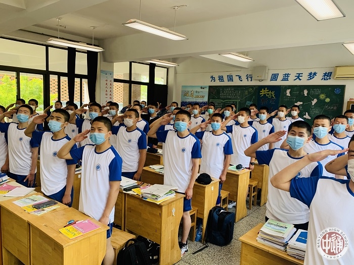 5月4日上午大课间时间,学校举行了以“五四精神”为主题的云升旗仪式,纪念“五四运动”101周年。全校师生在各班教室通过观看视频转播的形式认真参与了此次升旗仪式。