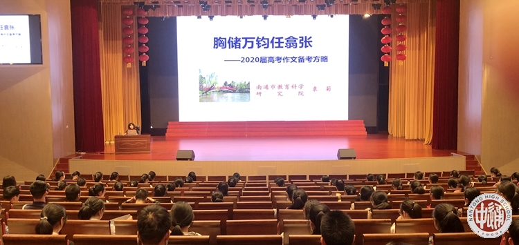 5月12日下午,南通市教育科学研究院高中语文教研员、江苏省特级教师、教授级高级教师、省“333高层次人才培养工程”培养对象袁菊老师应邀来校,为高三学子做高考写作专题讲座。