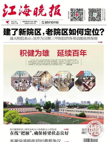 同时,地方媒体《南通日报》刊发《南通中学全方位开展健康卫生教育:三年寒窗,学子视力普遍没降》、《江海晚报》头版刊发《积健为雄 延续百年》,专题介绍我校在环境治理、学校健康教育、健康知识普及、健康行为举止等方面突出成绩。