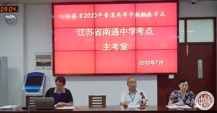7月6日上午8:50,江苏省南通中学50名教师,江苏省南通第一中学54名教师,南通市田家炳中学12名教师,南通大学附属中学8名教师参加监考,在我校宏观楼(主考室)参加了监考业务培训。培训活动由考点副主任、副校长陈建云主持,考点主任、校长成锦平对考务工作提出了具体明确的要求,教务处主任顾军做了细致的考务培训。
