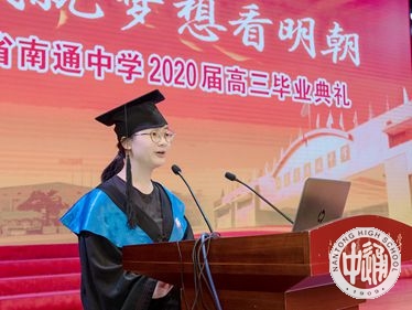 典礼活动中,校领导为各班学生代表颁发毕业贺书。成锦平校长发表了热情洋溢的致辞。他深情回顾了本届高三毕业学子三年来精彩的生活以及所取得的丰硕成果,对于能在疫情影响下坚持梦想、不懈努力的学子们表达了由衷的祝贺,并勉励大家在将来的人生道路上不仅仅满足于“术”的追求,还要积极锤炼“道”这一层面的素养。临别之际,高三各备课组的老师们也通过视频送上了情意满满的毕业祝福。高三6班李姣洋同学代表全体高三毕业生向老师、向母校表达真挚的感谢:“今后我们不论走到哪里,身上都会烙印着通中的标记,我们也应牢记诚于做人,恒于学问的校训,并在生活中一以贯之,如此,方能不负通中之名。”