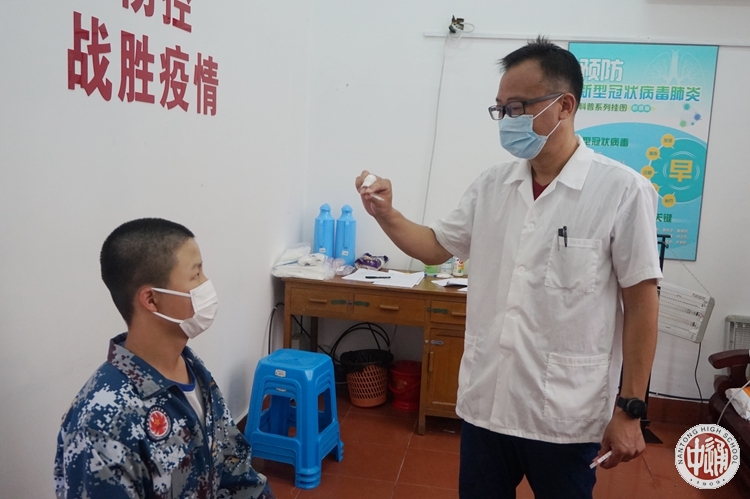 演练过程中,模拟学校工作人员在入校晨检中发现一名学生体温异常,随即通知工作人员,并将该生带到临时隔离观察室。由学校医务人员对该生进行消毒、询问、调查、记录,并立即打电话通知该生家长,同时迅速将该生情况上报学校疫情防控领导组。学校应急处置小组马上启动应急预案,并及时进行上报。