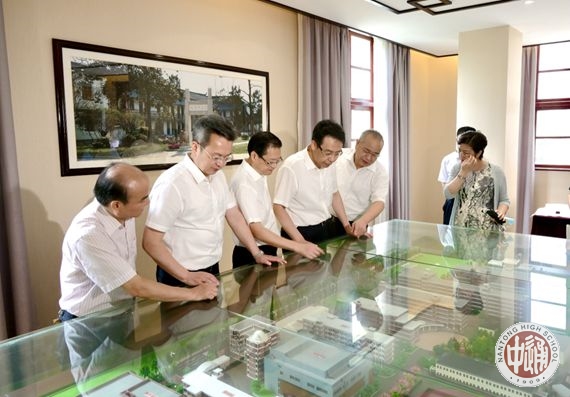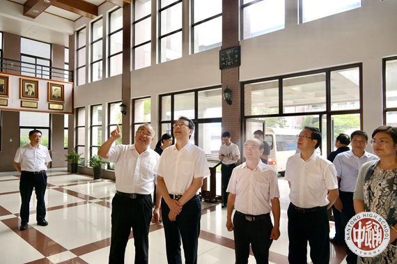 在科学楼大厅院士墙前,成校长向王市长介绍了我校20位两院院士校友。王市长表示,这不仅仅是南通中学的骄傲,更是整个南通教育悠久历史和辉煌成绩的缩影。南通中学作为百年名校,要把南通教育的光荣传统继承好,并在新时期赋予新的时代内涵进一步弘扬好!王市长一行经过学校电子屏时,王市长饶有兴致地驻足观看了与我校相关的新闻报道,对我校相关工作给予了充分肯定。
