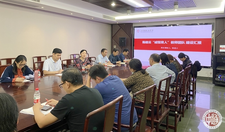 陈建云副校长作为“诚恒育人”四有好教师团队的领衔人向参访来宾汇报了团队建设的开展情况,着重介绍了以“诚恒育人”四有好教师团队为核心,我校高三年级部所进行的新高考研究、优生培养、教学管理的创新等。参访团一行在实地深入课堂听课的基础上 ,与我校高三各备课组长就新高考背景下的复习计划和策略进行了深入的沟通和交流。