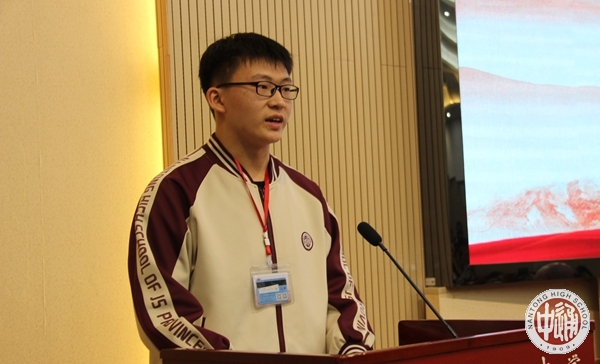 南通中学获奖学生代表严宇恒和通师一附获奖学生代表陈王实分别发表了获奖感言。严宇恒同学表示荣誉终将成为过去,需要更多思考的是如何向朱理治前辈学习。他代表全体通中学子从胸怀祖国、崇尚科学、懂得感恩三个方面明确了努力的方向。陈王实同学介绍了自己在学习、实践中取得的成绩,表达了拥抱梦想,励志为中华崛起而奋斗的决心。