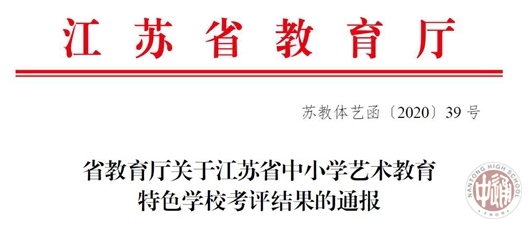 12月17日,根据江苏省教育厅公布的苏教体艺函〔2020〕 39号文件通知,南通中学获评“江苏省中小学艺术教育特色学校”,而且是南通地区唯一以优秀成绩获评的学校。