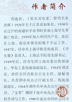 5月24日,抗战时期的革命老前辈、现高龄88岁的我校1937年校友刘鑑农先生在夫人和好友的陪同下健步回到母校,向母校赠送长篇革命回忆录《回忆与缅怀》。下图是回忆录封面和作者简介。