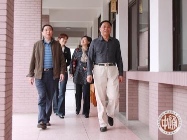 上左图我校党委书记韩明飞陪同市政府政风行风监督员视察考场和测试秩序。上右图笔试完毕的考生正由监考老师引领至面试考场。