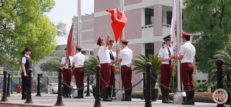 上图高三同学列队跑步进场。下图国旗班换上夏装,飒爽英姿地将国旗升起,为迎接高考的学长壮行。