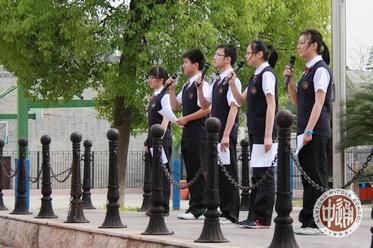 通中每一个高中生,在校期间都三次聆听预祝通中学子高考辉煌的国旗下演讲,两次是为学长,一次为自己。 本次国旗下演讲的主持人是仲蕊(右图左一),演讲者(左起)是俞成、徐震、周蜜、凌子。 演讲主题为《全力以赴,决胜考场;凯歌高奏,再创辉煌》。全文如下。 |