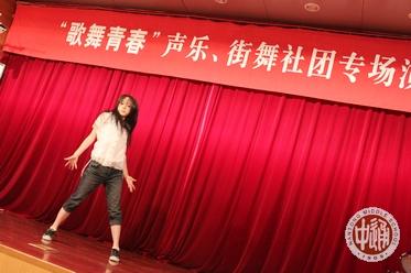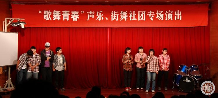 5月27日中午,我校学生社团声乐社和街舞社在图书馆报告厅联袂推出“歌舞青春”大型专场演出。整个报告厅座无虚席,不少同学站着观看了整场演出,人气火爆不让上周五楸阳剧社年度大戏。 次日周六,通中记者团高一年级的新任编辑在校园网“学生天地”版块“社团活动”栏目以中英文双语形式编发了本次活动的报道,标题为“歌舞青春、梦想飞扬”,摄影、中文和英文记者分别为保让昊、张乐、王昕扬。 |