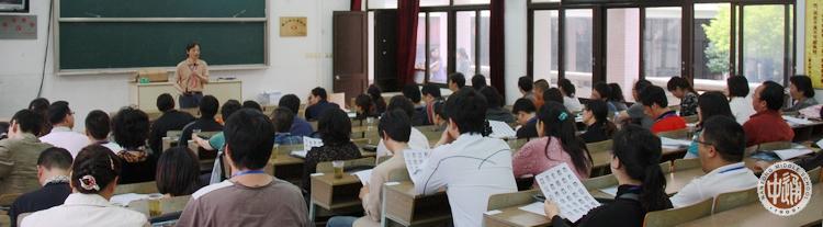 以下两图是我校考点两个主考室今天下午2:30开始的监考老师现场准备工作检查会。