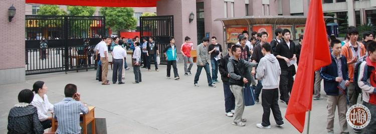 考试日程从明天开始,今天下午考生来我校试座。大多数考生下午3:00已经进了考点。上图右边两位老师拿着准考证正在等待尚未到的考生。镜头前的一排背影是考生家长,都很想知道考点内的情况。所以,今天的报道主要是为考生家长编写的,让家长们放心,孩子会在一个很好的环境里考出好成绩的。