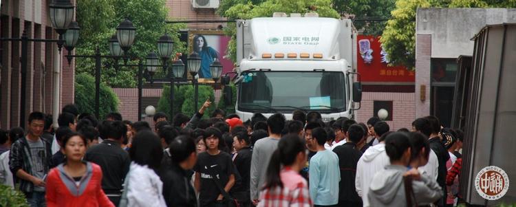 下图中有“国家电网”标记的汽车是市电力公司前几天就安放好的高考备用发电车。
