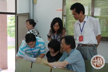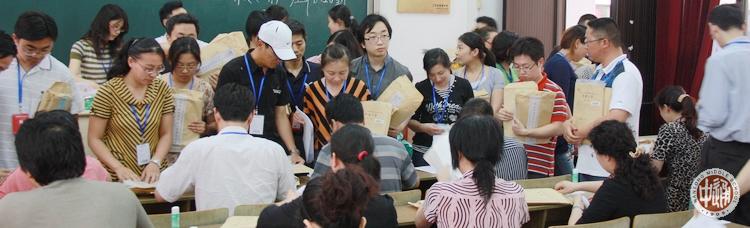 与此同时,监考老师们依旧一丝不苟地整理着考生们的试卷。