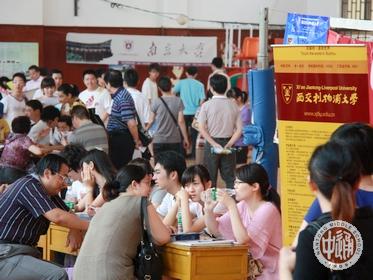 相较往年各高校分别着眼某一分数段考生的情况,今年出席招生咨询会的高校招生组对分数达到本一、本二线的考生都给予了普遍关注。此外,各高校招生组还主动给予我校近5%成绩未达本二线的考生有关志愿填报方面的建议。