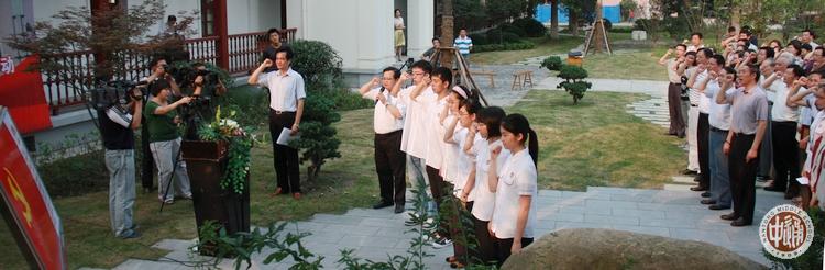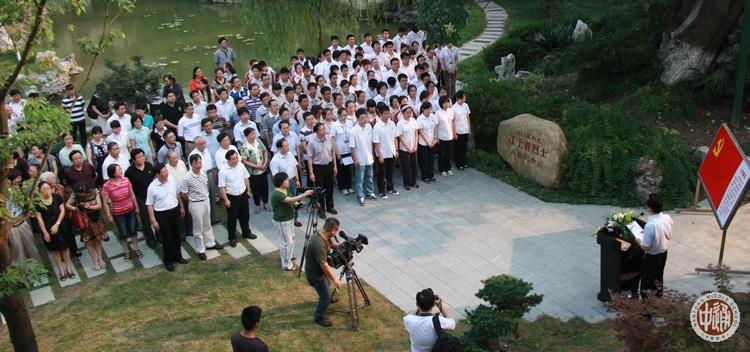在中国共产党诞辰90周年前夕,我校党委于6月27日下午以“爱国求真心向党,百年诚恒铸忠魂”为主题开展了隆重的纪念活动。活动地址在老楸树下江上青烈士入团纪念碑前,在校教工党员、离退休教工党员、本届毕业生新党员和高一高二年级学生入党积极分子一百余人出席了活动。
