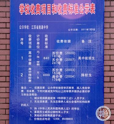 685名统招生的报到大厅设在食堂大楼二楼,185名择校生报道大厅设在一楼。右上图是张贴在食堂大楼入口处的《学校收费项目和收费标准公示表》,以下各图中新生正在大厅内自己填表、登记、缴费。