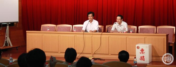 为贯彻建党90周年纪念大会胡锦涛讲话精神,中共南通市委采取系列措施进一步推动干部紧密联系群众。7月6日上午,市委组织部派干部来我校召集教工群众测评校级领导干部。被测评对象包括校长姚天勇、党委书记副校长韩明飞、副校长刘忠保、副校长朱全中、副校长许建平、校长助理沈惠祥。测评采用无记名投票方式,内容涉及领导班子工作表现和被测评对象个人品行等多方面。我校教代会代表和各部门、各学科、各年级负责人参加了测评。本版图片为测评现场镜头。 |