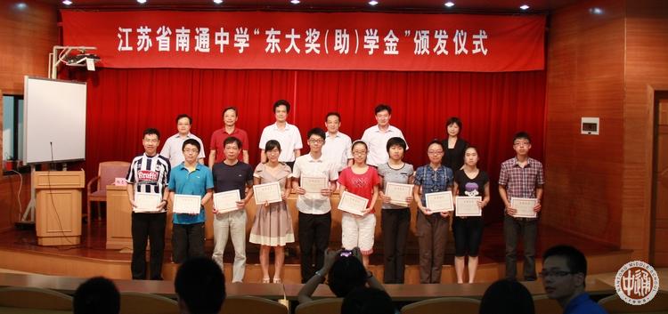 8月11日上午,我校举行“东大奖(助)学金”颁发仪式。该项基金由江苏东大商贸集团捐赠,用于奖励我校应届毕业生中特别优秀者和资助应届毕业生中家庭贫寒但品学兼优者。