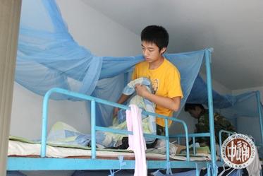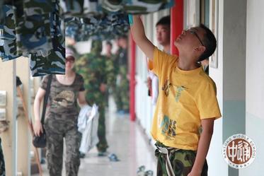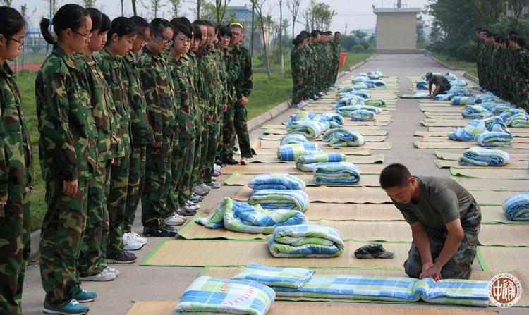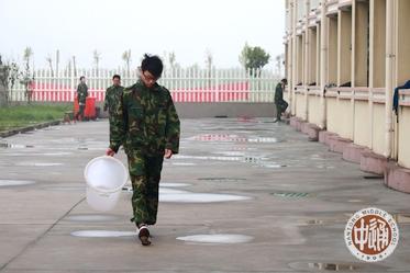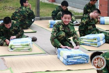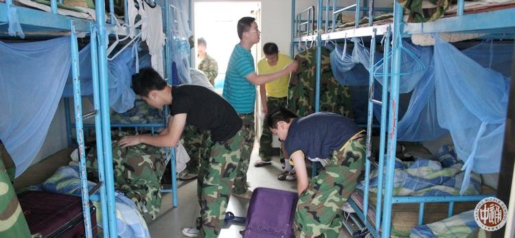 早上6点从教官那里传来消息,今天上午进行内务大整理,高一新生们抱着自己的席子和被褥排着队下楼在场地上接受教官的内务培训。