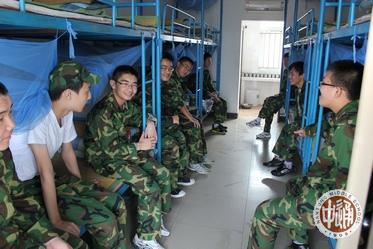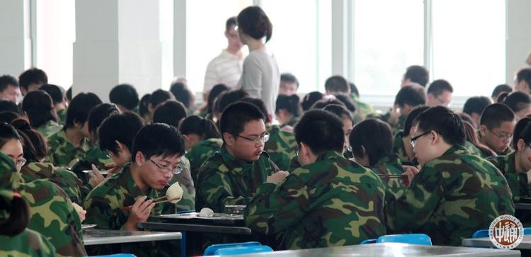 整个上午都在整理内务中,教官会跑到各个宿舍检查大家的蚊帐、被褥、垃圾桶、洗手池的整理工作。 一个紧张的上午就这样过去,大家也逐渐开始适应军训的生活。 以下是今日早餐的镜头,身着红马甲的战地记者正在拍摄用餐专辑的视频。再下面两幅照片依次是男生宿舍和女生宿舍。 |