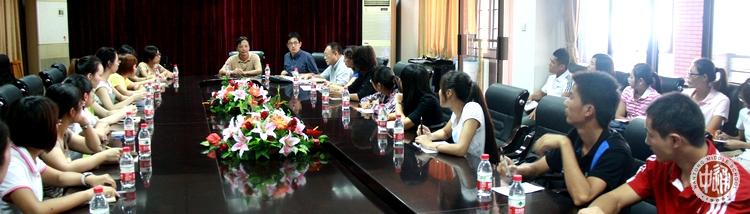 本学期我校接受南京师范大学和南通大学共21名师范专业学生来我校实习。9月2日,教务处召开实习工作会议,全体实习生及南师大和通大带队老师出席。会议由教务处主任助理顾军主持,副校长许建平对实习工作提出了具体要求。
