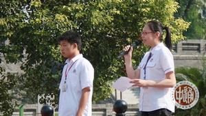 9月4日星期一,本学期首次升国旗仪式。 上图同学们身着白衬衫配深色长裤的校服方队跑步进场,右图是主持今天升国旗仪式的高三年级许强文同学和正在作国旗下演讲的通中学生会主席周蜜。 周蜜同学演讲全文如下。 |