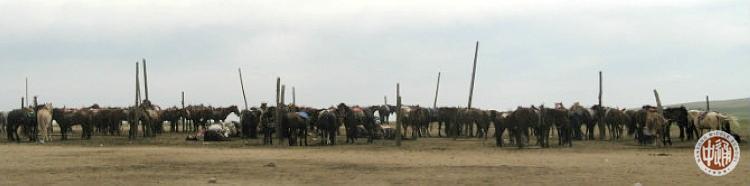 按照马倌的指示,我们五个五个走在一起。高大的马儿带给我们新奇,但是更多的是恐惧。身体僵硬,直冒冷汗,大家只能被马驮着慢慢走,至于周边的景色怎样,也没人顾及了。 感觉过了很久,才到了第一个景点,慢慢“爬”下马,大家终于有胆量大声的说话了,笑容也回到了脸上。有了经验之后,大家就轻松了很多,接下来就越来越享受了。虽然看到的景点只是一个小得不能再小的敖包,一滴水也没有也敢叫做湖的河床,一条快要消失的河流,但是骑马带来的愉悦冲淡了所有的失望,我们渐行渐远。