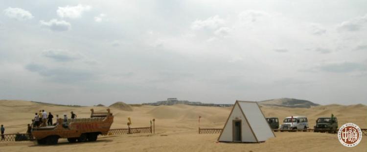 孩子们穿着沙袜,飞奔向沙漠边缘的一座沙丘,大人们看着心痒,也都纷纷而上。体力好的手脚并用一会就上去了,一个胖娃娃爬到一半无奈的滚落了下来。好在沙子又细又软,躺着坐着都还舒服。一阵兴奋过后,开始向沙漠里进发。下午两点多了,还没有吃午饭,炎热让人没有了胃口,身上背着沉沉的水,脚步越来越艰难。好在有车出现了,我们坐着造型奇异的沙漠观光车体会了一把过山车的感觉。还有草原的缆车、草原的火车。印象最深的,还是沙漠的驼队。应该有上百头骆驼吧,跟草原上的骆驼相比,它们显得瘦弱许多,每天无数次的来往于两个景点中,完全听从人类的指挥,驮着一群又一群兴奋的人们走向沙漠的稍深处。