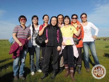 【编者按】开学初,生物学科邵蕾老师兴致勃勃地邀请网编浏览她的QQ空间相册。那是暑假里我校8位女老师相约自费蒙古游一路拍摄的。大漠的草原、红日、蒙古包和马群激起人无限遐想。为此网编采访了组织本次旅游活动的卞晓燕老师,卞老师发来大家的数幅合影照片并向本网站推荐了洪兆颖老师的游记。 以下是洪老师的游记全文(文中32人含家属)。右图是本次蒙古行全体老师合影,她们是(左起)王夕庆、洪兆颖、朱虹杰、唐兴玲、刘俊梅、卞晓燕、蒋平和邵蕾。文中的风景照都选自邵蕾的QQ空间。 |