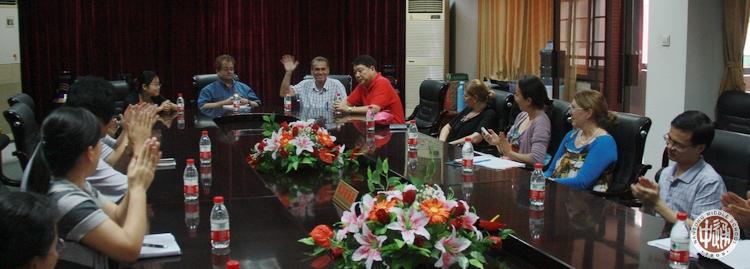 9月13日下午,我校国际教育部在敬铭楼第二会议室召开国际课程班任课教师联席会暨欢迎会,欢迎新来的外籍教师。会议由国际教育部主任滕旻彦主持,校长姚天勇、校长助理沈惠祥出席并分别致辞欢迎。