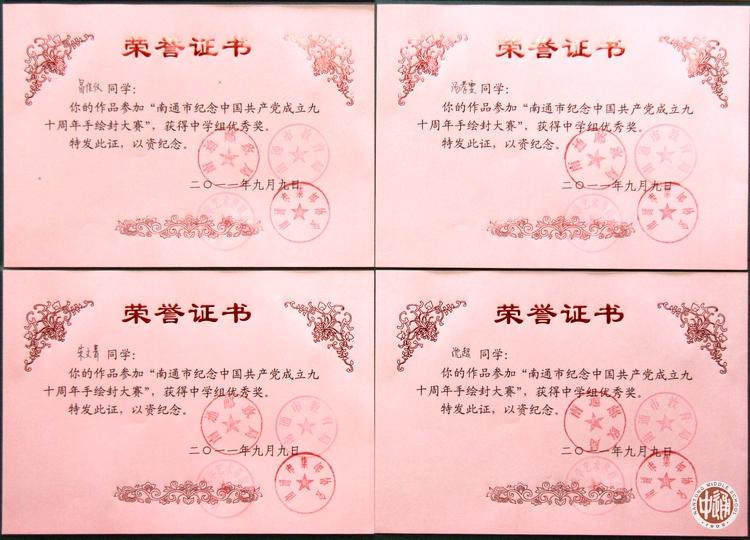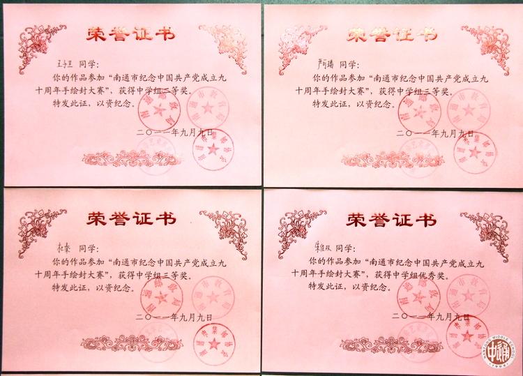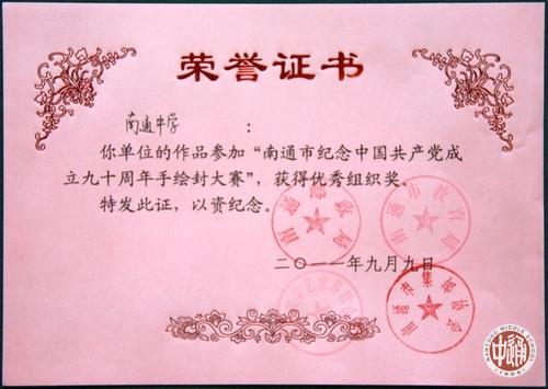 由南通邮政局、南通市教育局、南通市文联、南通市集邮协会联合举办的“纪念中国共产党成立九十周年”手绘纪念封大赛结果近日揭晓,南通市(五县四区)中学组设一等奖1名、二等奖5名、三等奖30名。