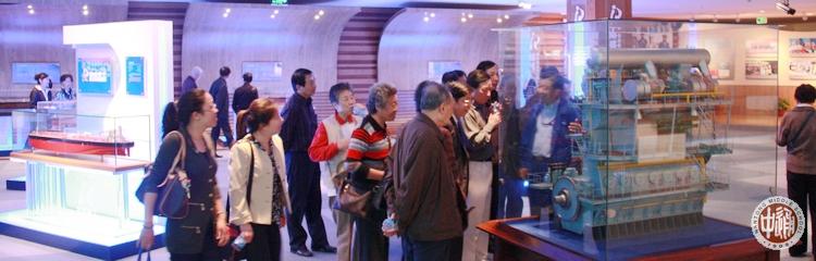 我校离退休教工兴致勃勃地参观了企业展厅,并到生产基地现场参观大型船舶制造过程。