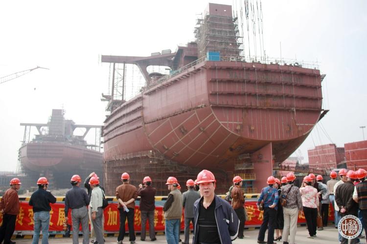 上图是起吊承重1600吨的世界最大龙门吊。本网站记者在离龙门吊数百米处拍下了上面的照片,照片右下角细如虫蚁的人影就是前往参观的我校离退休老师。下图是正在制造的载重40万吨的货轮。老师们透过熔盛重工感受到改革开放30多年来中国经济的飞跃发展,为南通制造业走在全国先列而自豪。