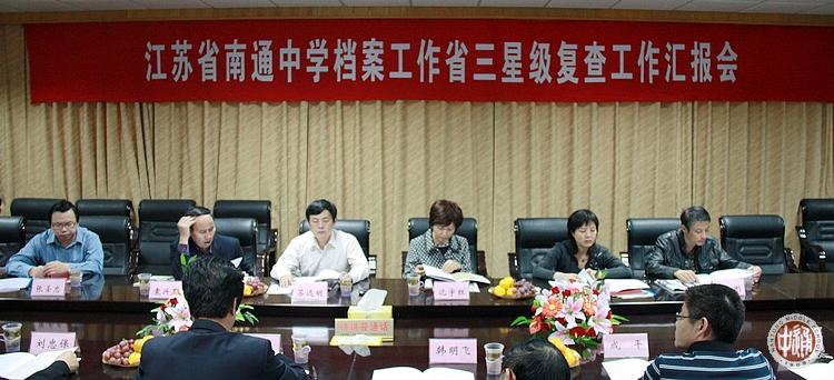 10月19日下午,市教育局局长助理袁兴石陪同南通市档案局局长、档案馆馆长苏远明领队的省档案工作三星级单位复查工作组来我校检查档案工作。我校校长姚天勇、副校长刘忠保、党政办主任成平出席汇报会并全程陪同检查了档案室、保密室、校史馆等地。检查组对我校档案工作表示满意,并鼓励我校在三星级基础上申报更高级别的档案工作称号。
