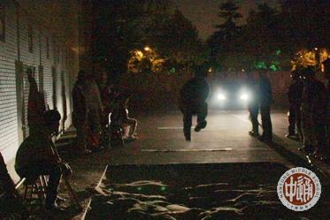 天黑了,一位老师用车灯照亮赛场,最后的跳远比赛在灯光下顺利完成。